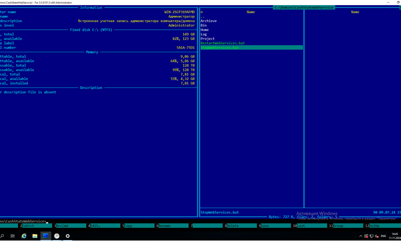 - Перезапустить виртуальную машину, дождаться запуска ОС, убедиться по файлу C:\Domino\CashStateWebService\Log\CashState\8089\Alert_RETAIL-NET.log, что web-сервер стартовал без ошибок и прослушивает нужный адрес и порт.