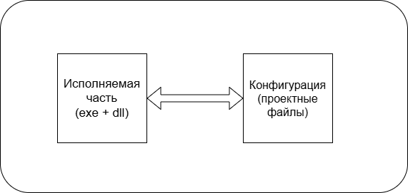 Домино 7 - это интерпретатор, который получает на вход данные в виде большого списка файлов. В этих файлах находится описание доступа к файлам БД, описание структуры БД, меню, сценариев действий, сами действия (язык скриптов). Вся эта конфигурационная часть называется проектом. Также имеется исполнительная часть - exe и dll, в которых реализованы процедуры и функции.