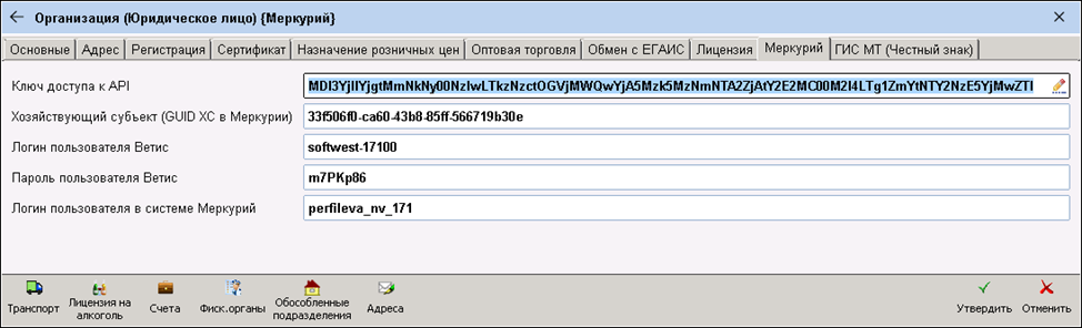 - Взаимодействие с системой «Ветис-Меркурий». Открывает доступ к одноименному административному меню.